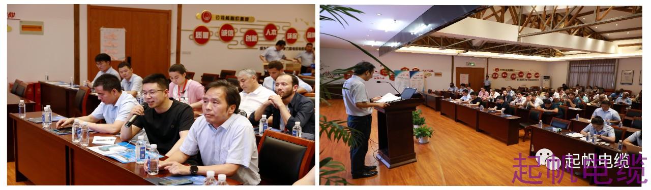 參觀結(jié)束后,起帆電纜董事長周桂華、董事會(huì)秘書陳永達(dá)、銷售總監(jiān)兼總經(jīng)理助理周智巧、生產(chǎn)副總周仙來和學(xué)員們進(jìn)行了熱烈的座談交流。董事會(huì)秘書陳永達(dá)對(duì)研修班一行表達(dá)了熱烈的歡迎,并簡要介紹了起帆電纜目前經(jīng)營情況和企業(yè)愿景。雙方就發(fā)展中國家在電纜制造業(yè)中面臨的挑戰(zhàn)、技術(shù)合作和市場(chǎng)拓展等問題進(jìn)行了深入的討論。